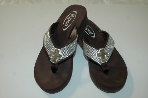 BLING ULTRA COMFY 8 ROWS RHINESTONE -CROSS CONCHO BROWN FLIP-FLOPS Review