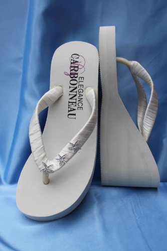 High Ivory Wedge Bridal Flip Flop Sandals with Rhinestone Starfish Review